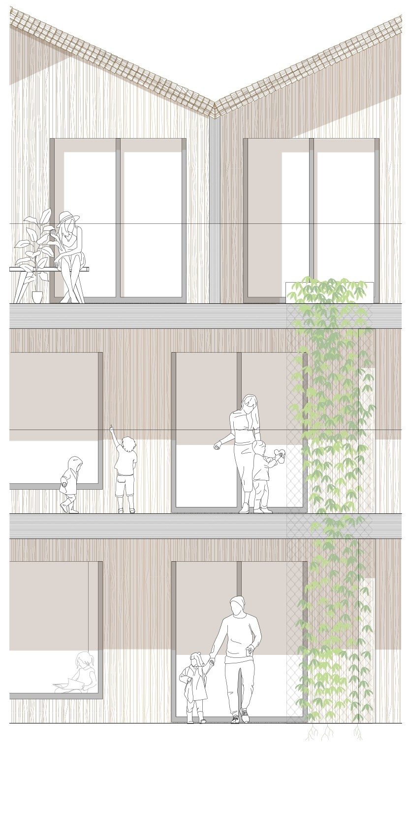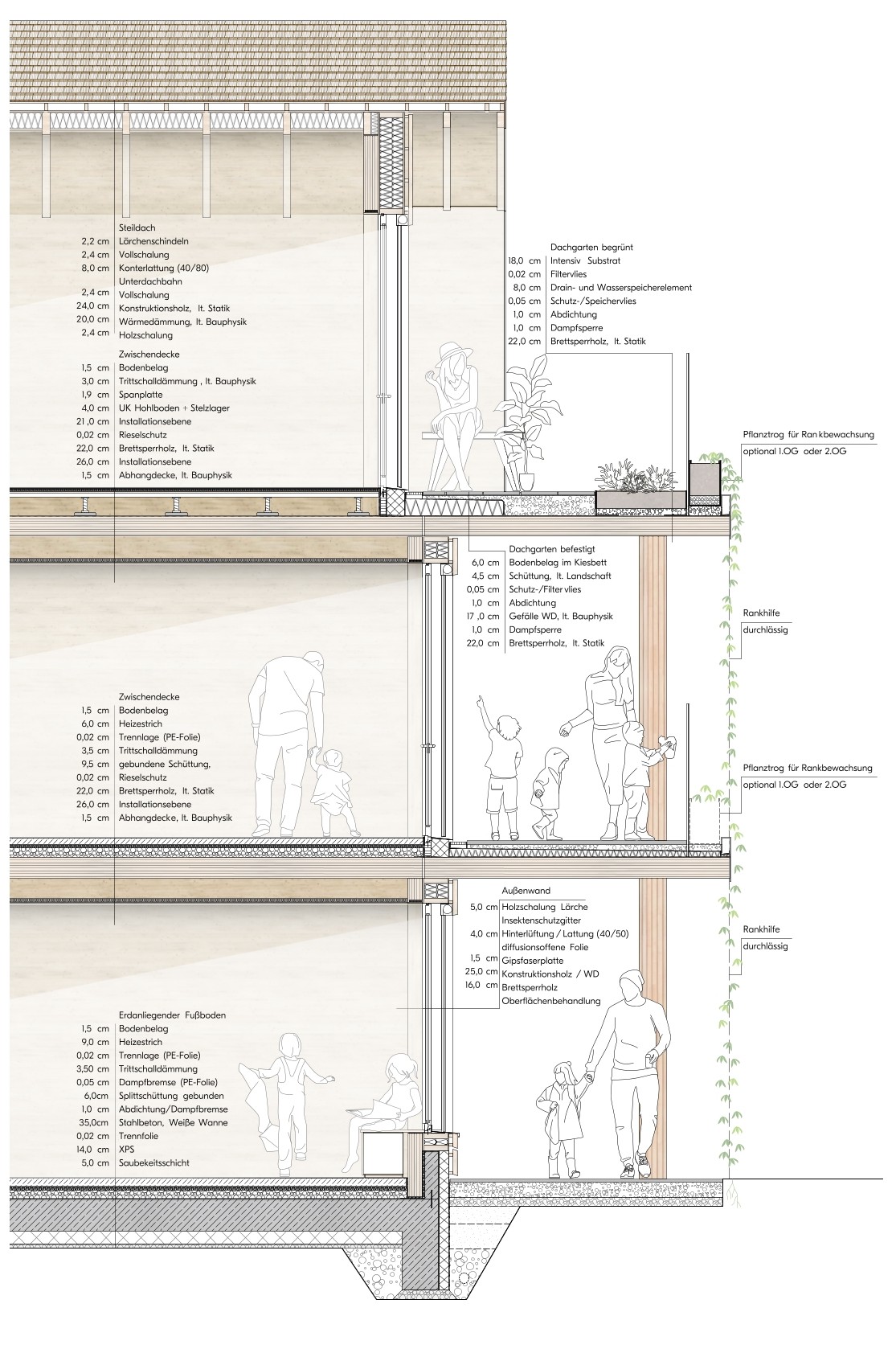 Nachhaltigkeit und Effizienz stehen im Mittelpunkt des Projekts. Holzfertigteile, Photovoltaik und Wärmepumpe reduzieren Bauzeit, Kosten und Energieverbrauch. Gründach, natürliche Belichtung und intelligente Lüftungssysteme schaffen ein gesundes Raumklima und tragen zu einem klima:aktiv Gold-Standard bei.