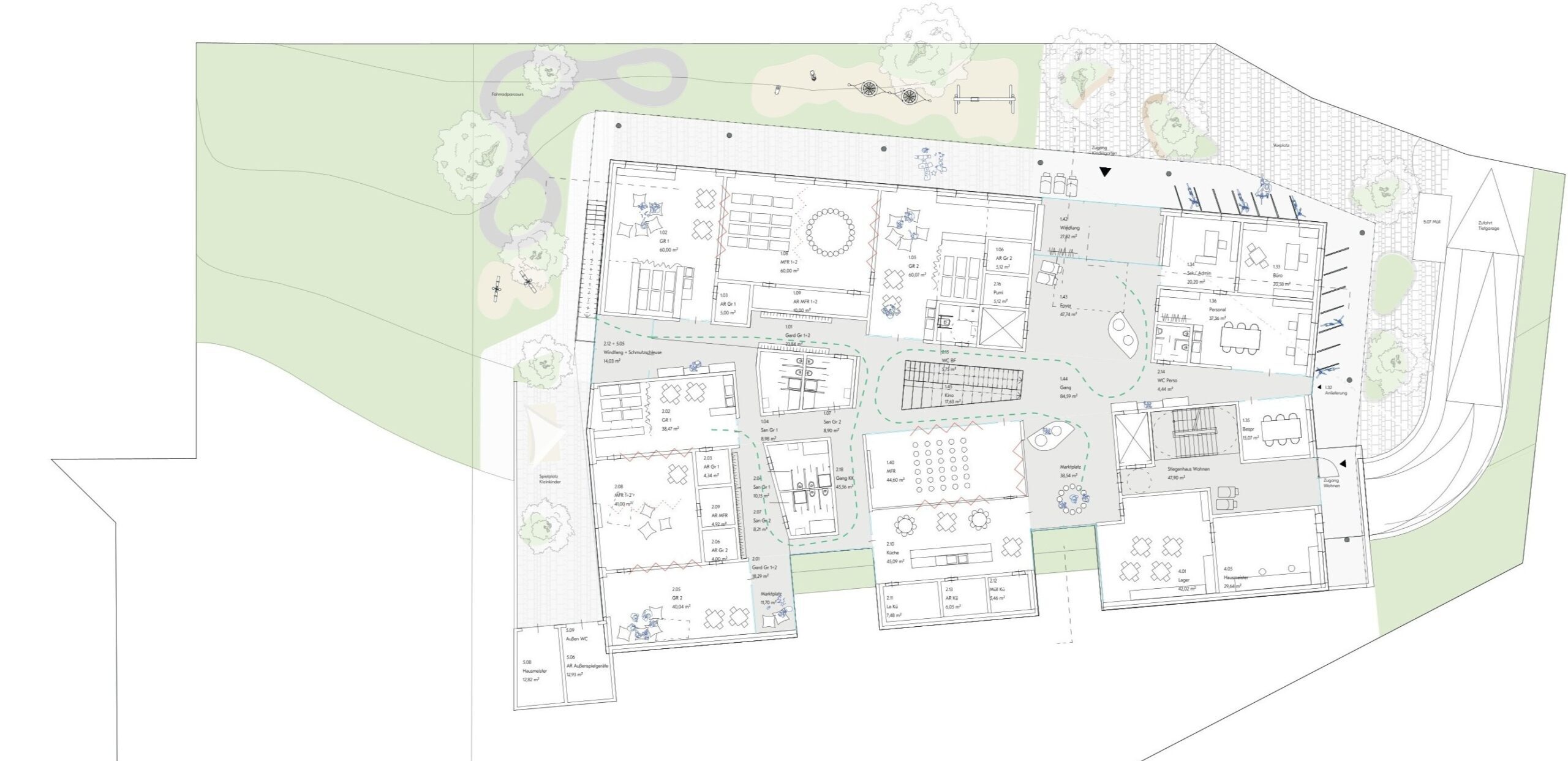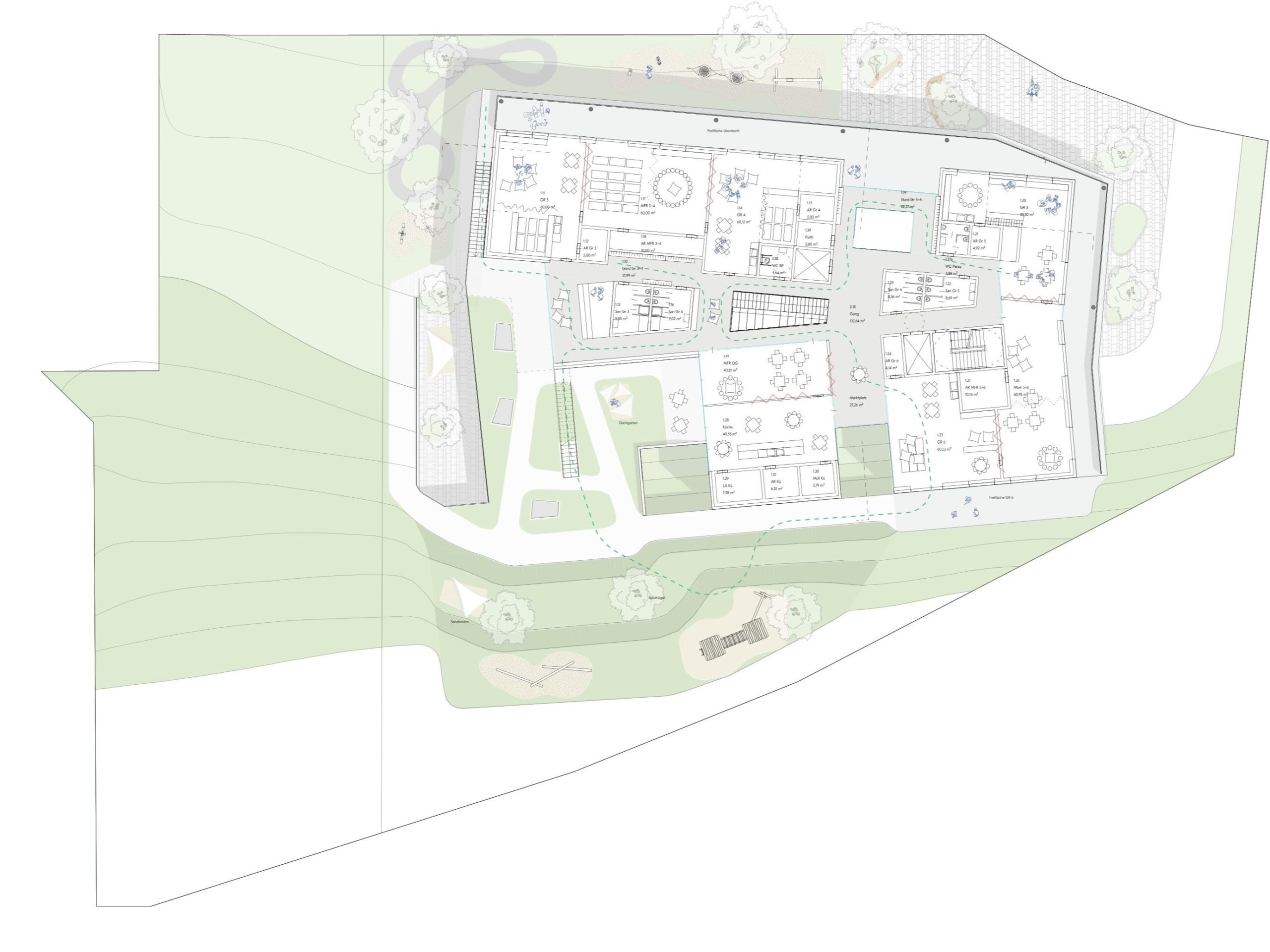 Das Gebäude ist flexibel nutzbar und offen für die Gemeinde. Großzügige Freiräume, wandelbare Räume und barrierefreie Zugänge fördern Gemeinschaft und Zukunftsfähigkeit. So entsteht ein Ort, der funktional, ökologisch und sozial nachhaltig gestaltet ist – für alle Generationen.